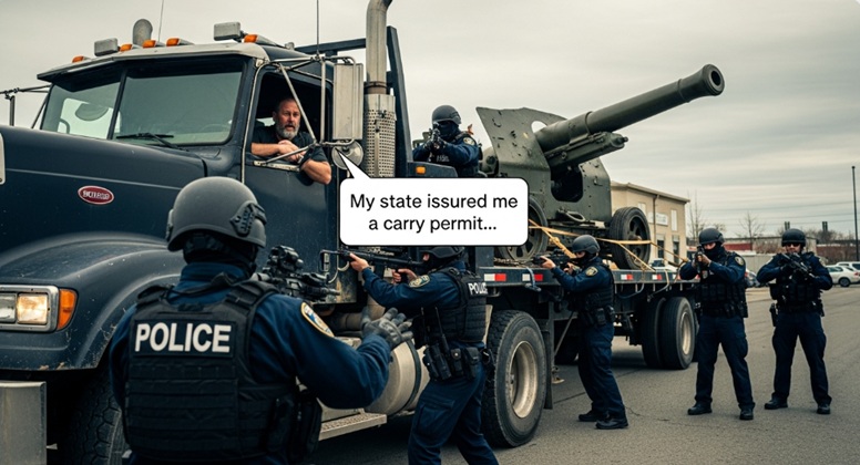 Yeah without reading everything (I’ve got work to do before dark and freezing), there is a provision for honoring the laws of other states. Forget the term of if it is federal law or constitutional. It’s the reason driversvlicenses are honored in other states, and likely soon carry permits. Troopers are not always right.